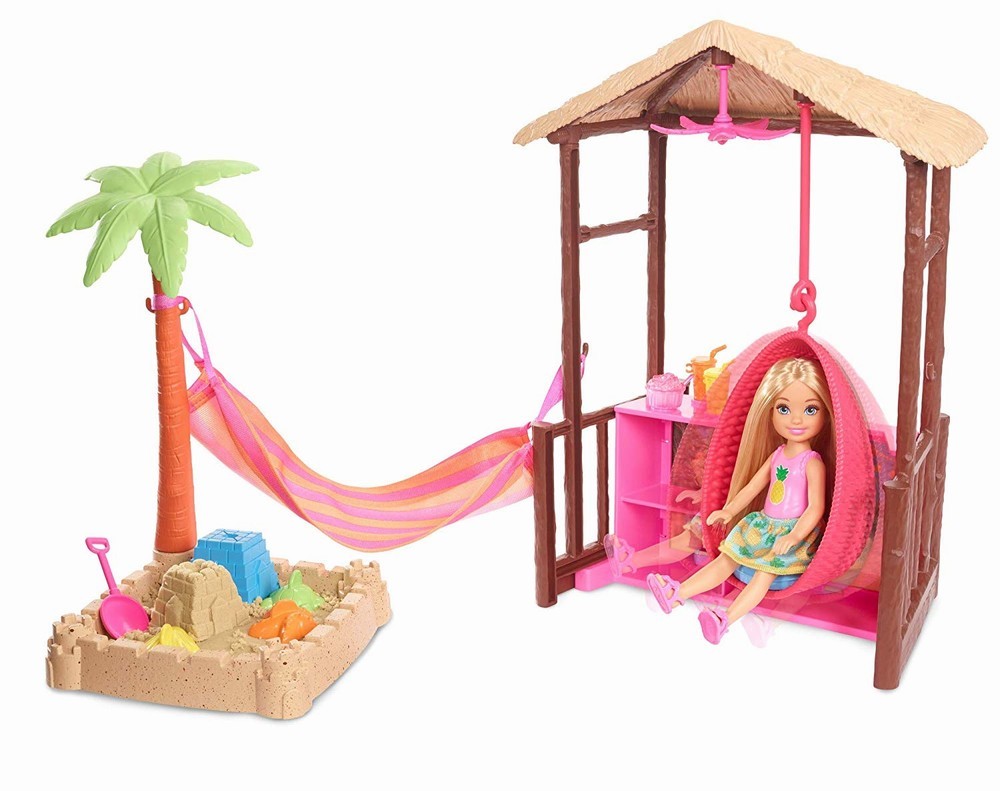 Hai sa ne bucuram de vacanta cu acest set Barbie® Chelsea®. Joaca va fi distractiva cu noul set Chelsea cu nisip kinetic si accesorii! Aranjeaza si rearanjeaza piesele incluse pentru o noua poveste in fiecare zi.