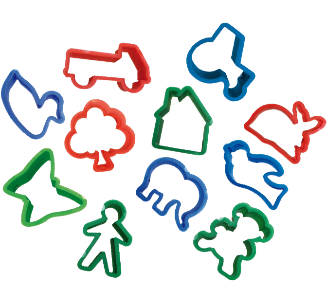 Setul include opt recipiente cu plastilina de inalta calitate, moale si viu colorat si douasprezece cutite speciale intr-o varietate de forme.