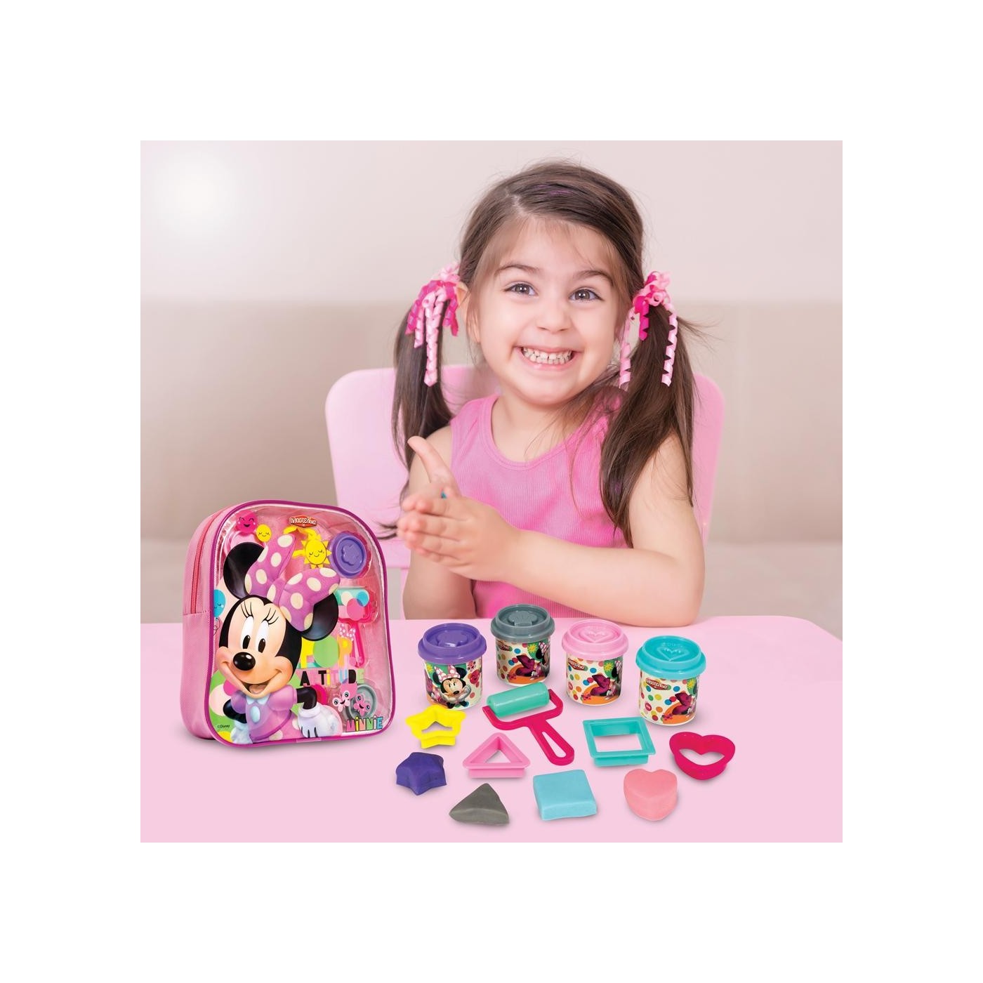Set plastilina - Gentuta Minnie cu plastilina este fabricată din PVC, cu design colorat si modern. Este perfectă pentru depozitare usoara si transport, ofera posibilitati nelimitate de joc acasa, la scoala sau in calatorii. Gentuta contine 4 borcanase de pasta modelatoare non-toxica (pe baza de faina de grau), de diferite culori cu indragita eroina Minnie cu matrite pe capac si ustensile. Valori dezvoltate: Dezvoltare senzoriala, Concentrarea, Creativitatea, Atentia, Imaginatia.