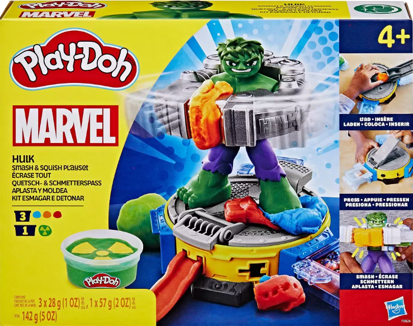 Acest set Play-Doh vine cu 142 g de compus de modelare. Jucariile de imaginatie precum acest set de joaca Play-Doh Marvel sunt cadouri grozave pentru baietii si fetele care iubesc jucariile Hulk, figurile super-eroi, mestesuguri si jucarii pentru copii.