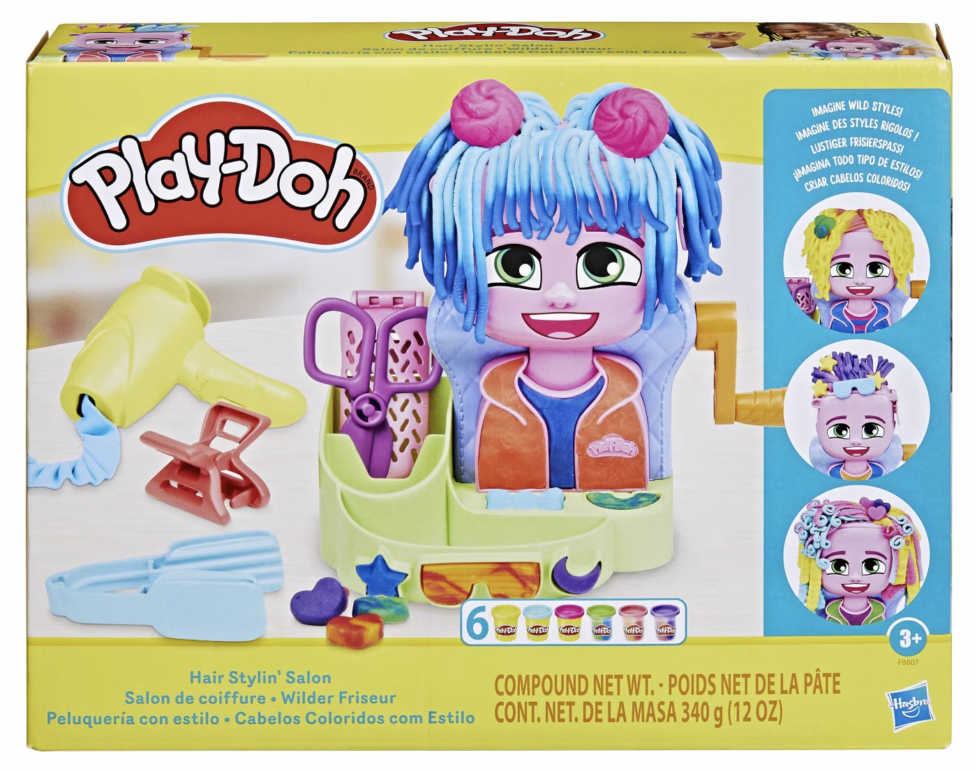 Copiii isi pot exprima stilul unic cu acest set de joaca salon de coafura Play-Doh! incarca pasta modelatoare Play-Doh si incepe sa cresti si sa realizezi coafuri trasnite cu parul Play-Doh! Acest set Play-Doh include multe accesorii Play-Doh distractive, precum un uscator de par care creeaza bucle, forma de creasta, accesoriul de incretit si 2 placi diferite pentru a face diferite texturi de par. si, cu 340 g de pasta modelatoare Play-Doh, inclusiv cele 3 cutii cu cate 2 culori, copiii pot face coafuri lungi sau scurte! Acest set de joaca de interior este perfect pentru stimularea imaginatiei. Seturile Play-Doh reprezinta un cadou extraordinar pentru fete si baieti, pentru copiii de la 3 ani in sus. Hasbro, Play-Doh si toate proprietatile asociate sunt marci comerciale ale Hasbro.