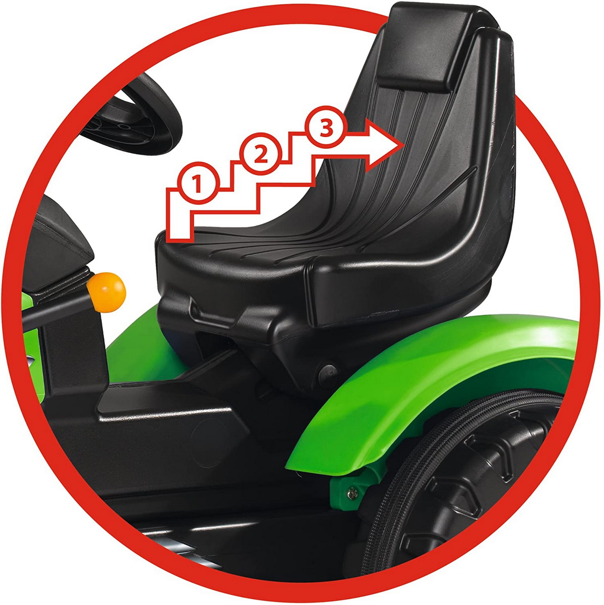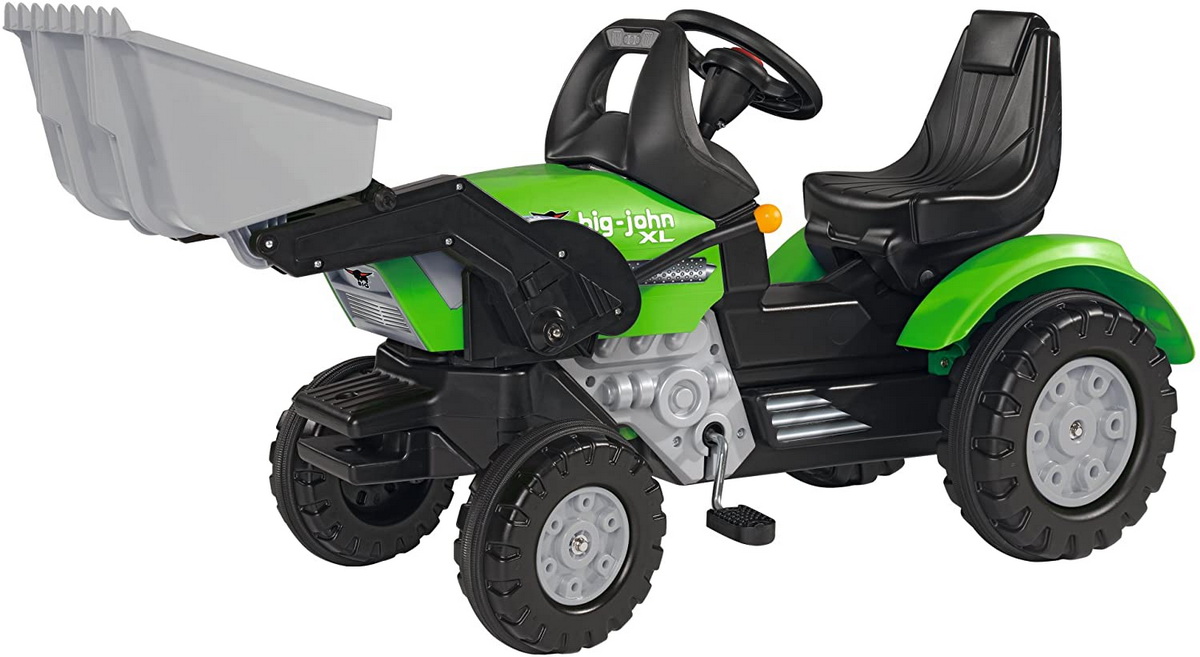 Tractorul pentru copii John XL marca BIG potrivit pentru copii de la varsta de trei ani are stabilitatea perfecta, asadar nu este nevoie sa va faceti griji pentru copii dvs. Tractorul cu pedale John are multe detalii minunate dar si o varietate de jocuri. Scaunul cu spatar format ergonomic este reglabil - fara ajutorul uneltelor ii puteti ajusta inaltimea si distanta, astfel scaunul are dimensiunile adaptate copilului dvs. Volanul este dotat cu un claxon clasic, asadar micul sofer poate avertiza lumea in situatiile necesare. Greutatea maxima a copilului pe care tractorul o poate suporta este de pana la 50 kg. Vehiculul este dotat cu roti antiderapante si un lant.