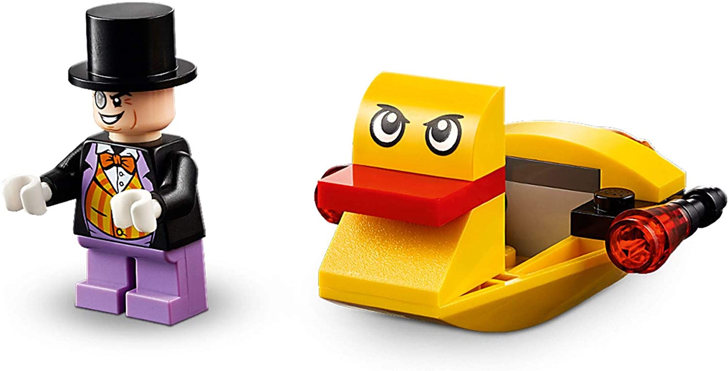 Penguin™ a scapat la bordul zbanghiei sale ambarcatiunii-rata! Lanseaza Batboat-ul si pleaca in urmarire! Pelerina lui Batman flutura in spate in timp ce goneste dupa super-raufacator. Trage cu laserul Batboat-ului. Arunca batarangul lui Batman. Le va devia Pinguin cu umbrela sa? Sau va scufunda Batman™ ambarcatiunea-rata, capturandu-l pe Penguin? Doar tanarul tau super-erou poate decide. Urmarirea Pinguinului cu Batboat LEGO® DC! (76158) ofera micutilor posibilitati nesfarsite de joaca imaginativa pe roluri, cu personaje preferate din filmele Batman™. Jucarie construieste-si-joaca-te de varf pentru fanii Batman! Minifigurinele Batman si The Penguin™ si cele 2 ambarcatiuni construibile super, pun actiunea si aventurile super eroilor direct in mainile copiilor. Acest set LEGO 4+ este o modalitate minunata prin care prescolarii si micutii deprind abilitati de constructie. Este usor de construit, astfel incat chiar si constructorii neinitiati pot trai bucuria constructiei ”pe cont propriu” - iar ghidul simplu explica clar procesul de constructie, dand copiilor incredere pentru a aborda proiecte LEGO mai dificile. Cauti cele mai bune cadouri Batman pentru copii? Daca doresti un cadou super de zi de nastere sau o jucarie de Craciun pentru copii de 4 ani si mai mari, seturile de constructie Batman LEGO DC au toate minifigurinele de actiune, dotarile formidabile si beneficiile de dezvoltare de care ai nevoie, pentru a face fericit un mic super erou!