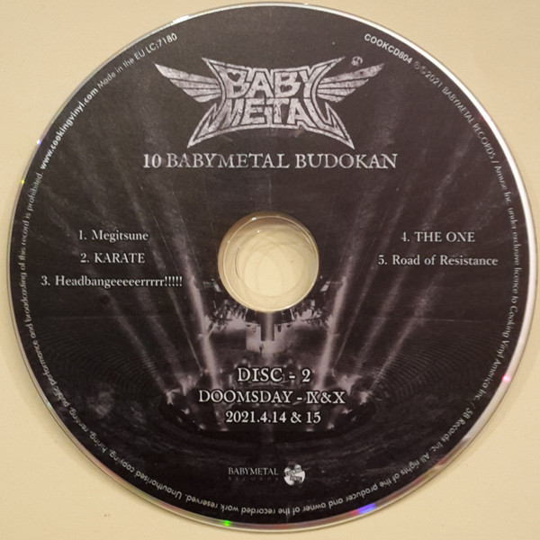 CD - 1BABYMETAL DEATH - Shin Ver. - Ijime, Dame, Zettai Gimme Chocolate!! Doki Doki ☆ Morning GJ! No Rain, No Rainbow Distortion PA PA YA!! CD - 2Megitsune KARATE Headbangeeeeerrrrr!!!!! THE ONE Road Of Resistance