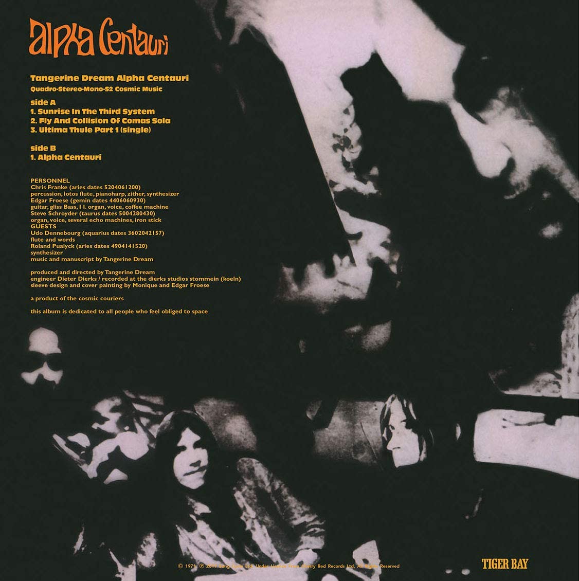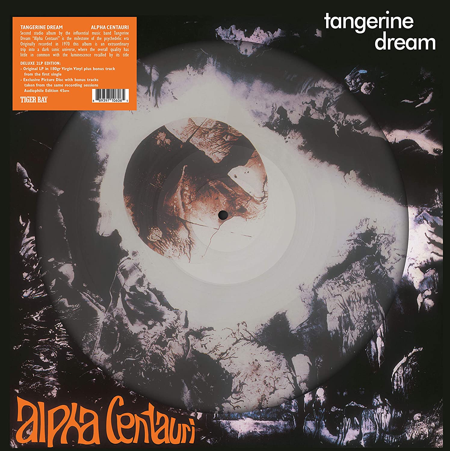 Second studio album by the influential music band Tangerine Dream, “Alpha Centauri” is the milestone of the psychedelic era. Originally recorded in 1970 at Stommeln’s sound-lab Studio Dierks and released under the Ralf-Ulrich Kaiser’s Ohr imprint, this album is an extraordinary trip into a dark sonic universe, where the overall quality has little in common with the luminescence recalled by its title. Organ acoustics and flute lean on mesmerising textures, created by employing the new VCS3 synthesiser. Deluxe 2LP edition with ‘Big Hole” Jacket containing the original LP in black vinyl 180gr and a picture disc with bonus tracks from the same recording sessions.