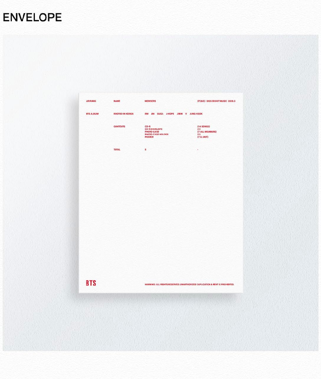 'Rooted in Korea Ver.’ include: Out Box, Badge, Envelope, CD Envelope, CD, Photo Card Set (7ea 1set), Photo Card Holder, Poster (1ea), Photo Book (84 pg).