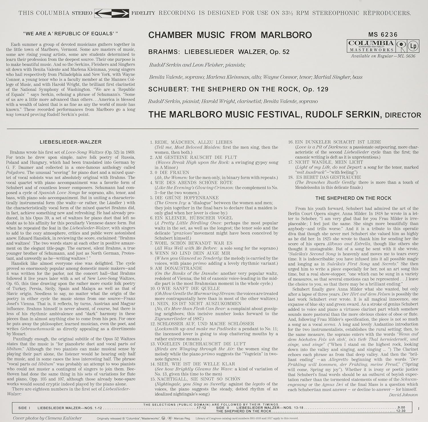 Brahms: Liebeslieder Walzer, Op. 52 / Schubert: The Shepherd On The Rock, Op. 129 - Vinyl