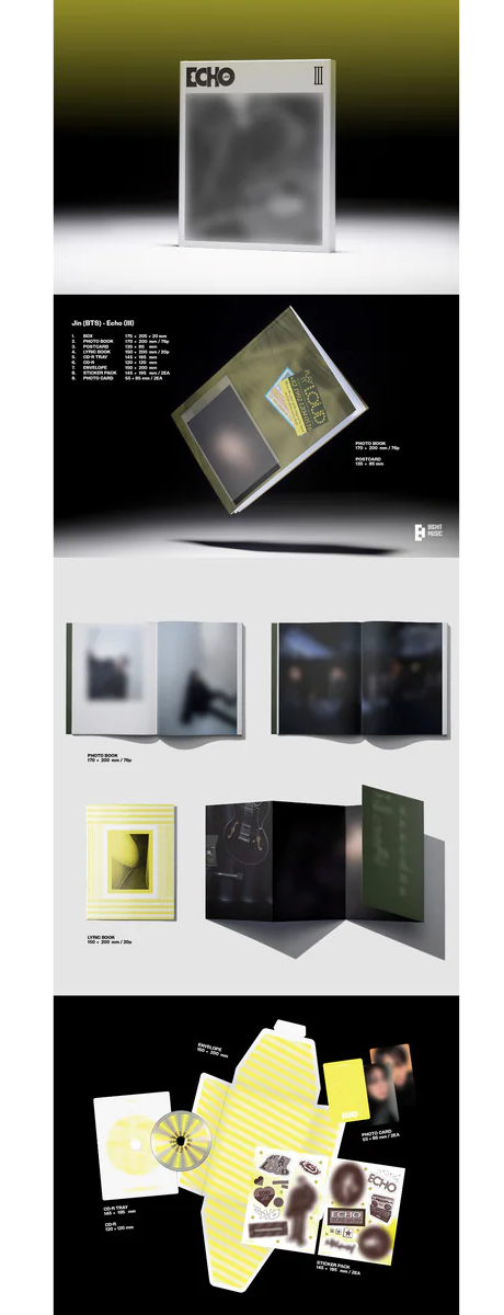 Box, Photo Book (76 pages), Post Card, Lyric Book (20 pages), CD Tray, CD, Envelope, Sticker Pack (2 each), Photo Card (2 each)