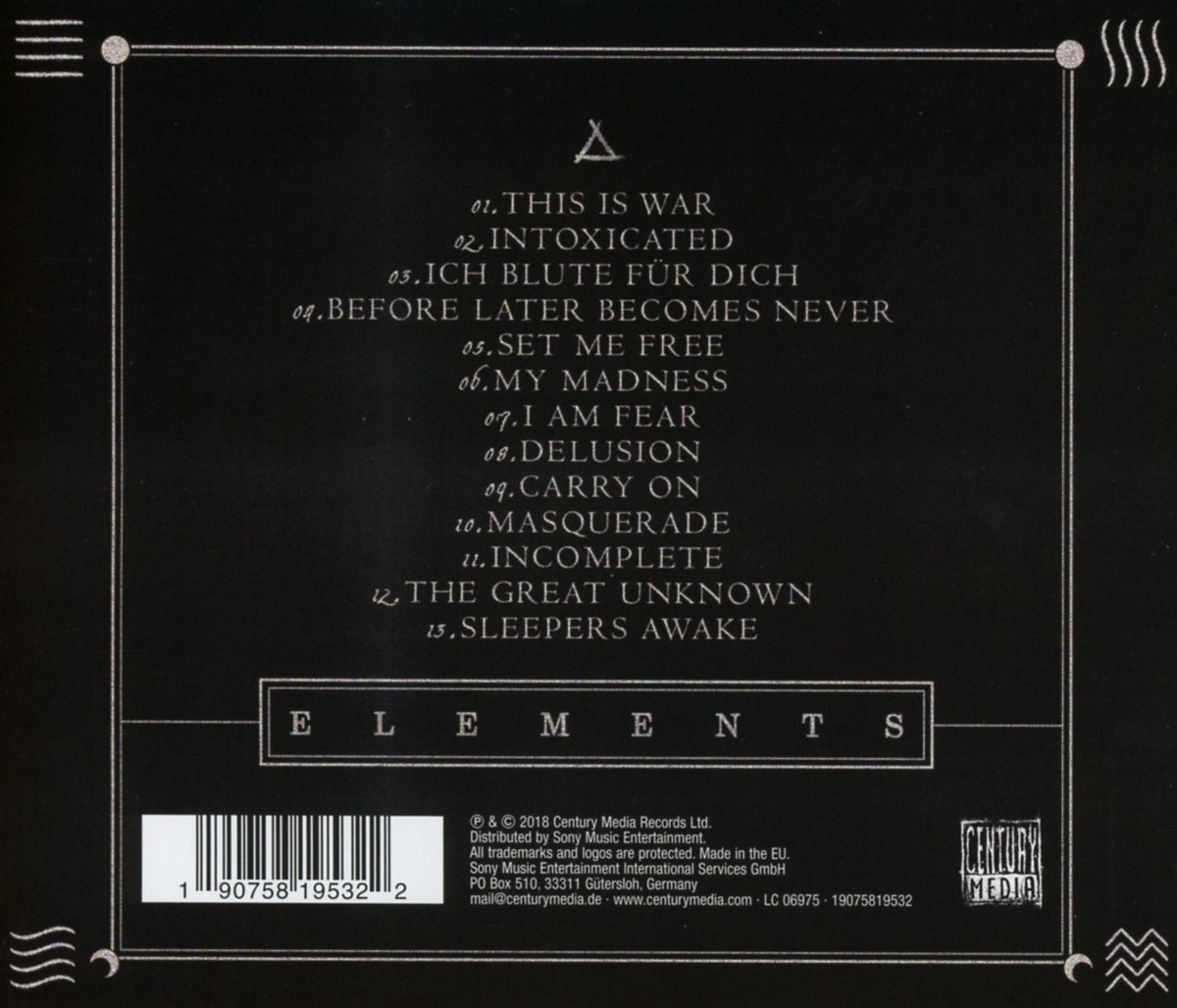 1. This Is War 2. Intoxicated 3. Ich blute fÃ1/4r Dich 4. Before Later Becomes Never 5. Set Me Free 6. My Madness 7. I Am Fear 8. Delusion 9. Carry on 10. Masquerade 11. Incomplete 12. The Great Unknown 13. Sleepers Awake