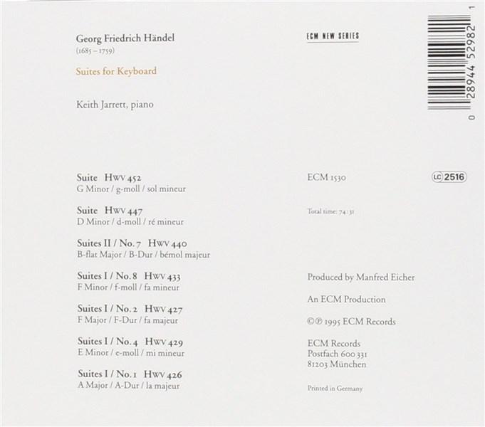 Having paid tribute to Johann Sebastian Bach in a sequence of New Series recordings of the Well-tempered Clavier, the Goldberg Variations and the French Suites, Keith Jarrett now turns his attention to Bach's near contemporary, Georg Friedrich Handel. The project, in fact, has been in preparation for a long time; Jarrett's liner note informs us that he first began to record Handel's keyboard suites some 20 years ago.