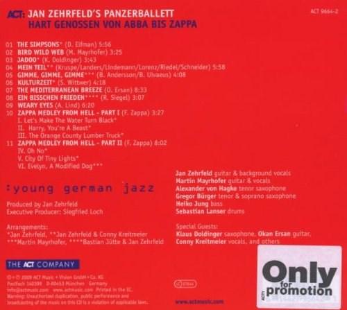 “Faster than Metallica, more powerful than Motörhead, and funnier than Rammstein” - that’s how the prestigious German newspaper DIE WELT described Jan Zehrfeld and his group Panzerballett. With a unique combination of jazz and heavy metal the band deconstructs music genres like few others. Few German recordings have caused such a national and international furore as did Starke Stücke, Panzerballett’s 2008 debut album for ACT. Hart Genossen von ABBA bis Zappa is the stylistic anarchists’ eagerly anticipated second escapade. Musical purists and the “jazz police” will despair, but emancipated listeners will walk away enchanted with smiles on their faces.