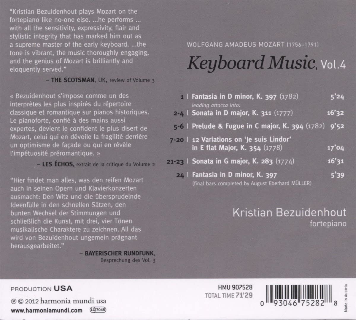 Kristian Bezuidenhout's recordings for harmonia mundi have garnered consistently brilliant reviews: volume 1 of his ongoing cycle of Mozart s keyboard works was awarded a Caecilia Prize and a Gramophone Recommends; volume 3 a Diapason d Or Arte and a Preis der Deutschen Schallplattenkritik, whilst his recording of Schumann s 'Dichterliebe' with Mark Padmore won an Edison Award.