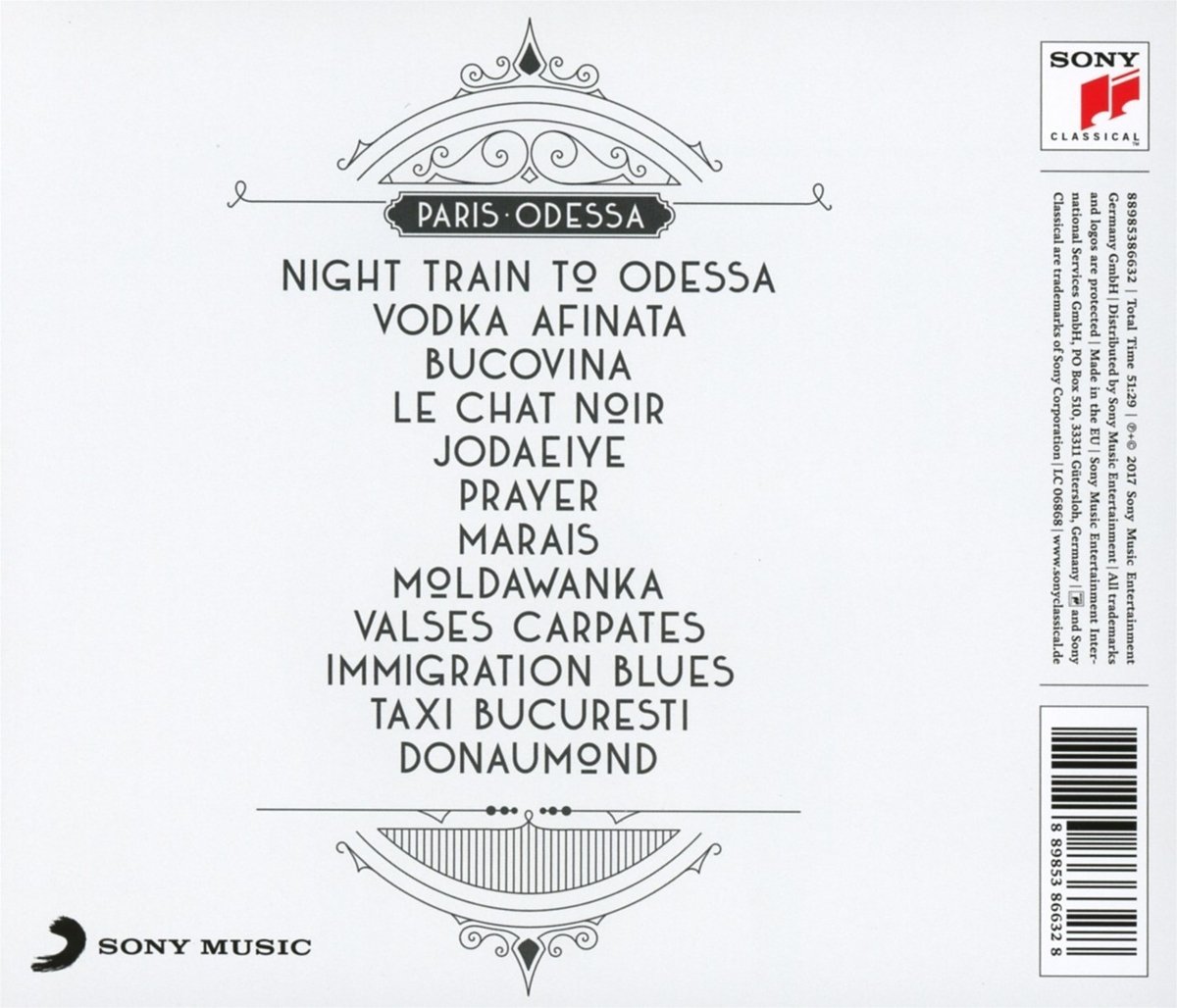 1. Night Train to Odessa 4:262. Vodka Afinata 4:043. Bucovina 5:274. Le Chat Noir 4:025. Jodaeiye 6:056. Prayer 3:007. Marais 5:098. Valses Carpates 3:049. Moldawanka 4:5510. Immigration Blues 2:4111. Taxi Bucuresti 4:3612. Donaumond 3:55