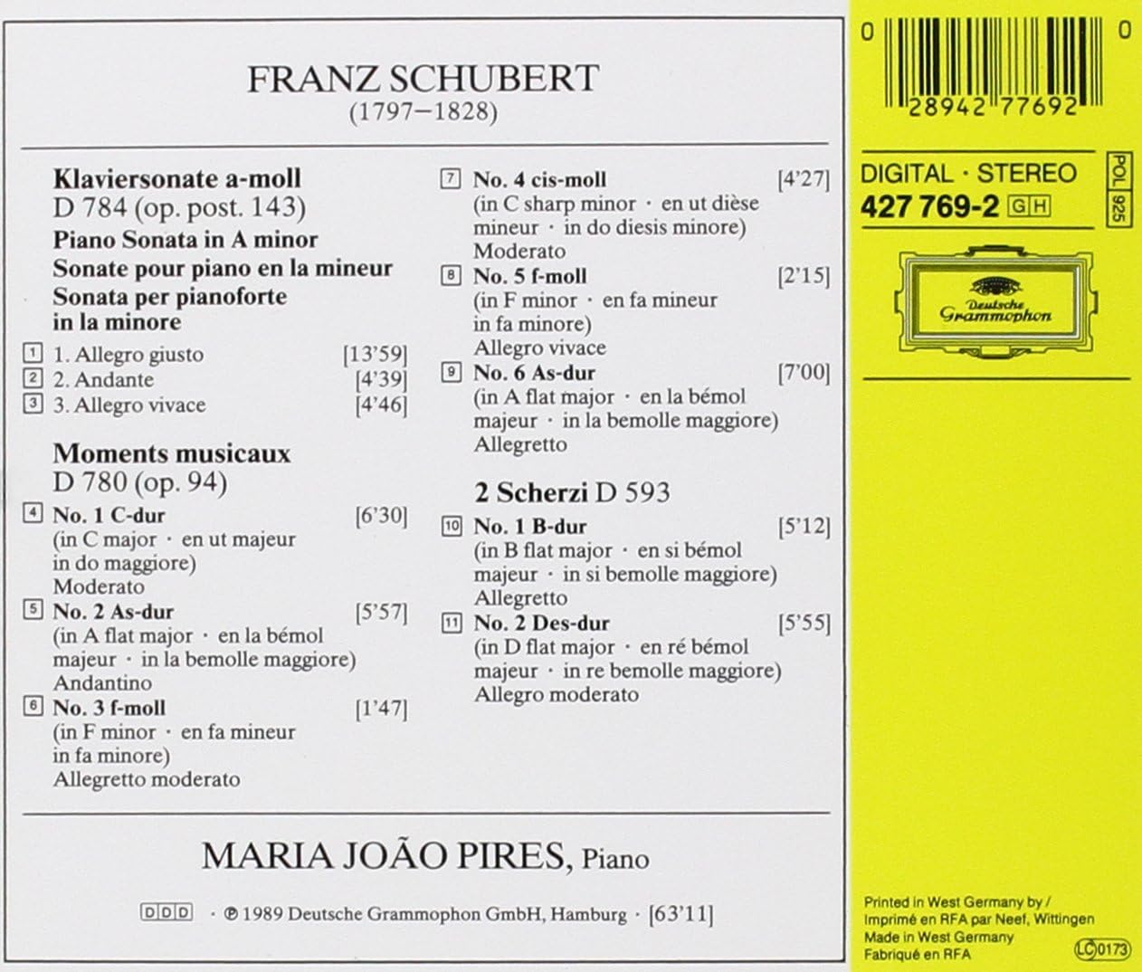 Klaviersonate A-moll D 784 (Op. Post. 143) = Piano Sonata In A Minor = Sonate Pour Piano En La Mineur = Sonata Per Pianoforte In La Minore