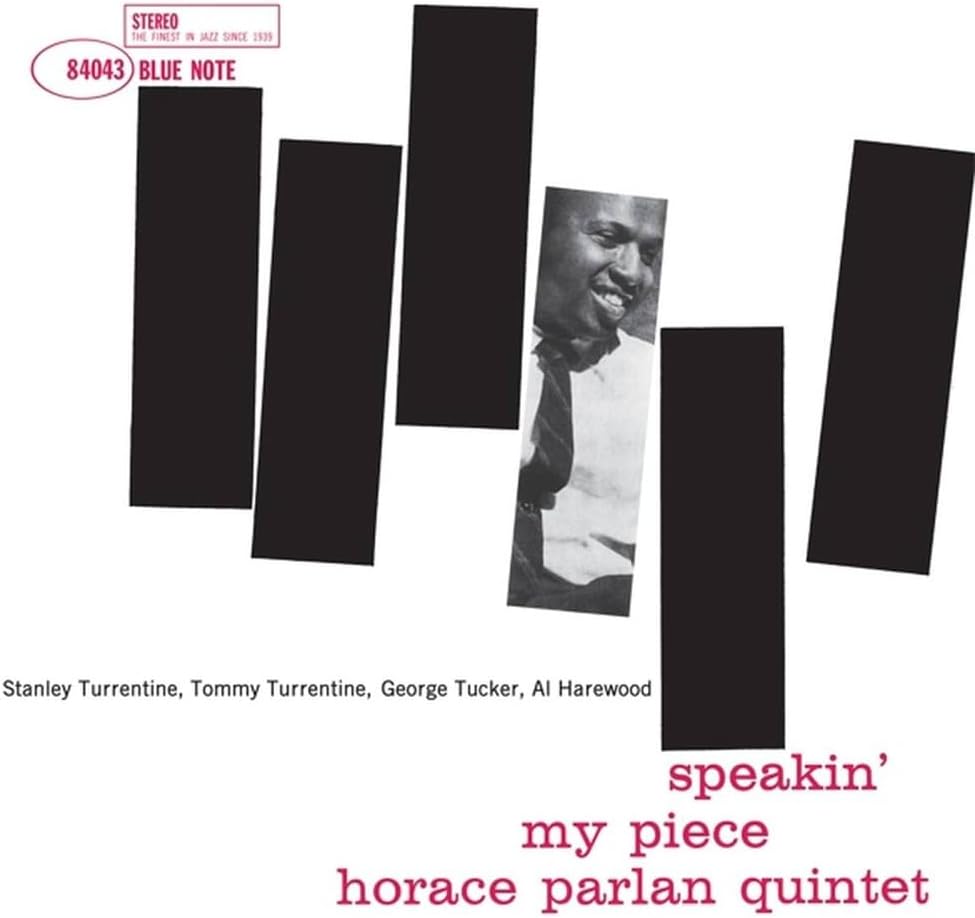 Pianist Horace Parlan is perhaps best known for his work with Charles Mingus on the bassist’s seminal 1959 albums Mingus Ah Um and Blues & Roots. That same year Parlan made his first Blue Note appearance with Lou Donaldson and in 1960 he began leading his own sessions for the label with the trio albums Movin’ & Groovin’ and Us Three. For his third Blue Note date Speakin’ My Piece, also recorded in 1960, Parlan expanded his trio with bassist George Tucker and drummer Al Harewood into a quintet with the addition of a frontline horn section featuring Stanley Turrentine on tenor saxophone and his brother Tommy Turrentine on trumpet. The result is a quintessential Blue Note hard bop album, adorned with a playful Reid Miles album cover design, and featuring Parlan originals like the bluesy “Wadin’” and tuneful “Up In Cynthia’s Room” along with pieces by each of the Turrentine brothers and a show- stopping performance on the ballad “Oh So Blue.”