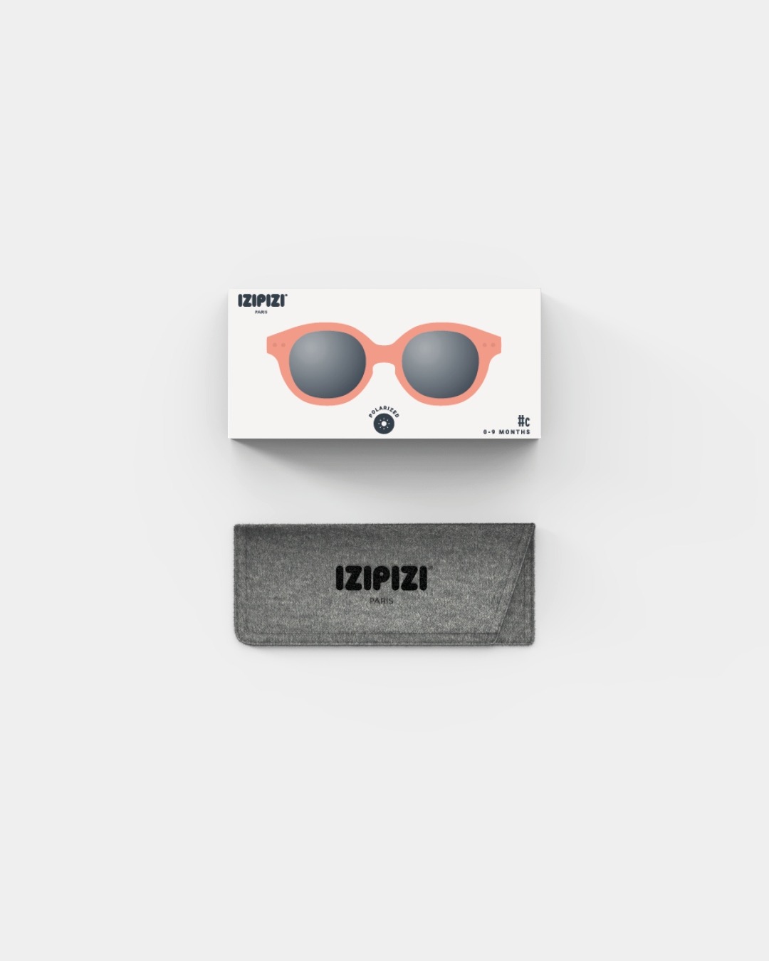Ochelarii de soare pentru bebeluși #C Apricot vin însoțiți de o husă de protecție.