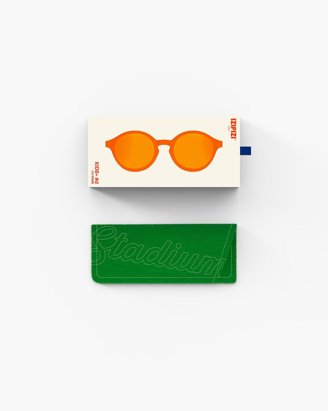 Ochelarii de soare pentru copii #D Orange Smash vin însoțiți de o husă de protecție.