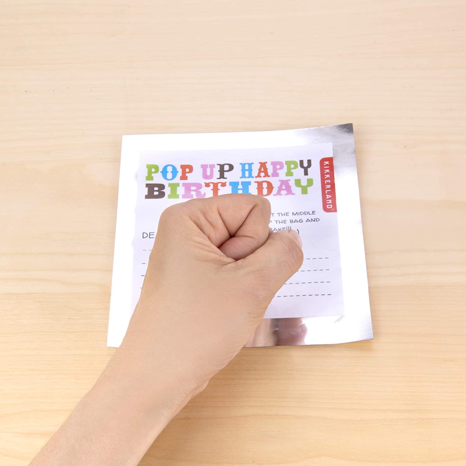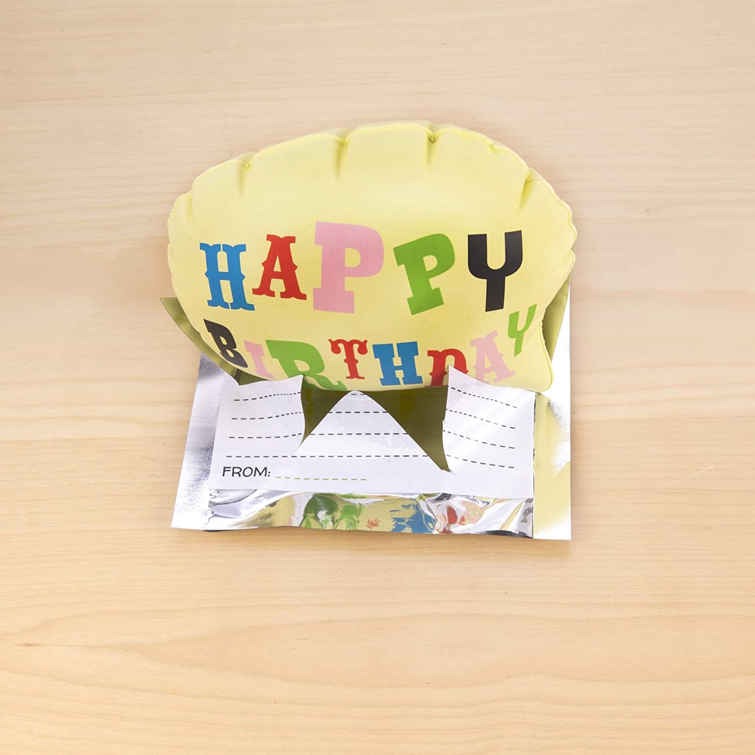 Lovește felicitarea, agită și așteaptă ca balonul din interior să iasă din ambalaj.