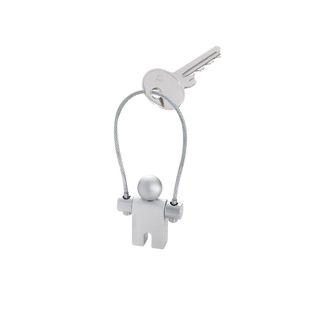 Breloc amuzant din aluminiu mat gri. Cheile se agață de cablul robust prin defiletarea unuia dintre capete.