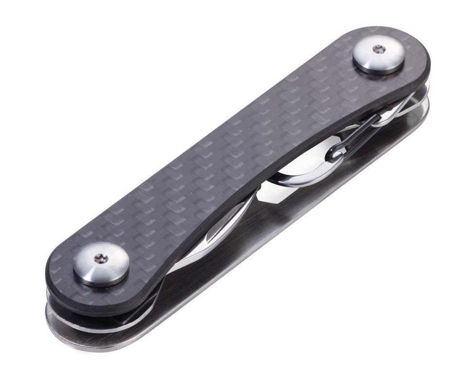 Breloc și unealtă multifuncțională cu 6 instrumente utile: deschizător de sticle, cheie cu 4 dimensiuni, carabină, două tipuri de șurubelnițe și riglă.