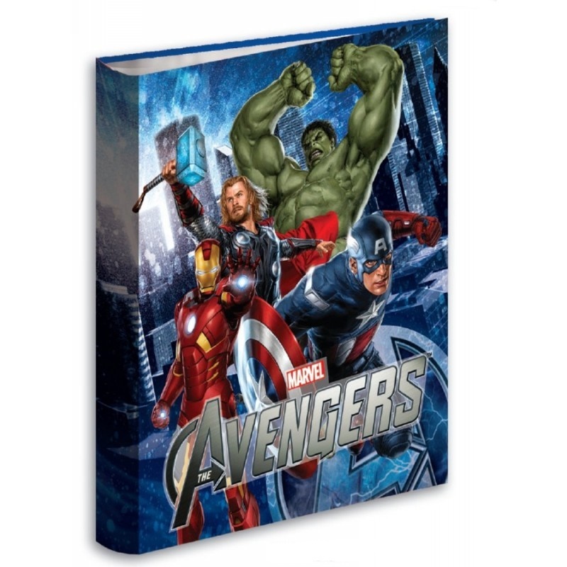 Pe fata caietului sunt imprimati super eroi din filmul Avangers (Thor, Hulk, Iron Man, Capitan America).