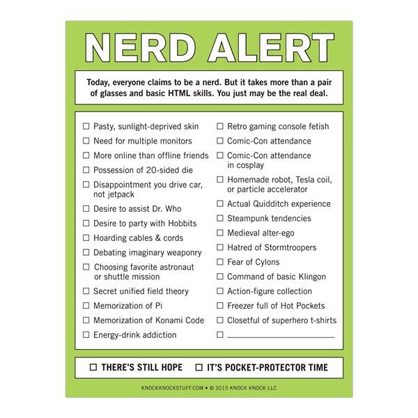 Before your nearest and nerdiest go into full-on dorkdom, issue this warning and attempt to pull them back from the dark side. Or, just let them know that they’re teetering on the brink. Their coolness depends on it.