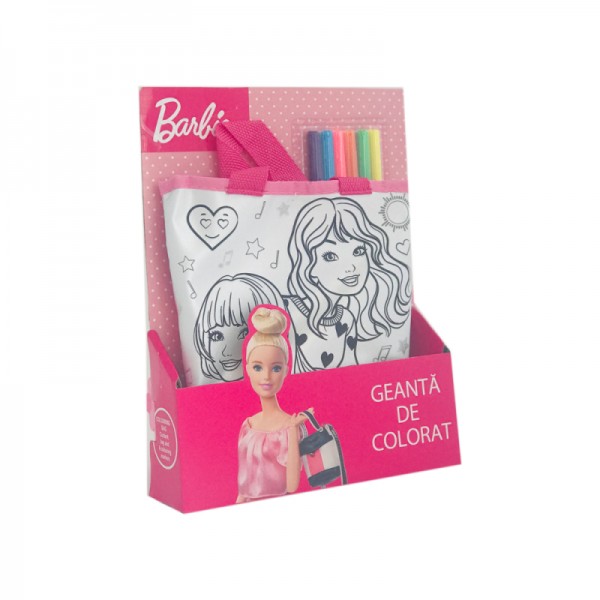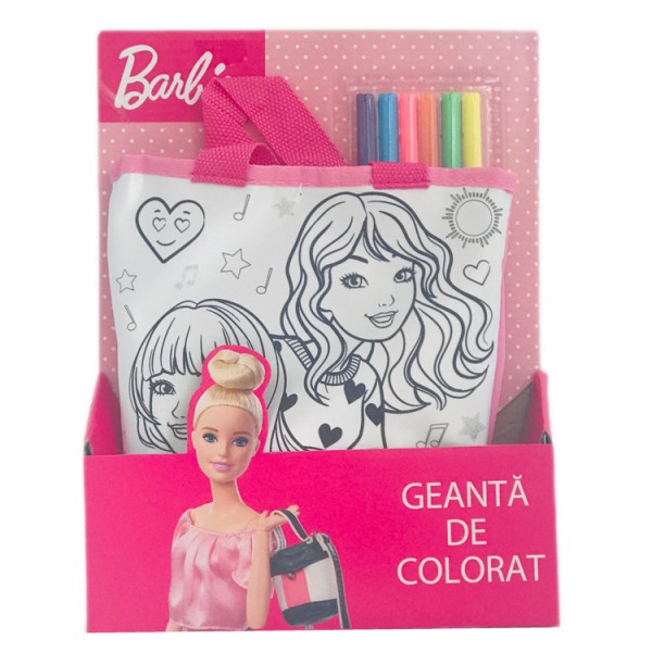 Geanta de colorat Barbie cu 6 markere lavabile.