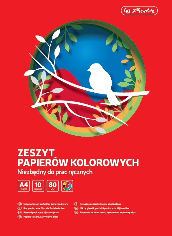 Hârtie glasată A4, Herlitz, dimensiune 20 x 30 cm, hârtie 80 g/mp, 10 file, diverse culori, 10 file înfoliate.