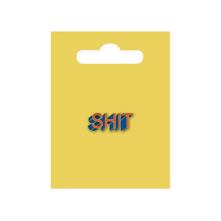 Acestă insignă este finisată cu smalț auriu și prezintă detalii roșii și albastre pentru a face înjurătora să fie un pic mai înțepătoare. Vine cu un spate cauciucat pentru o siguranță sporită.