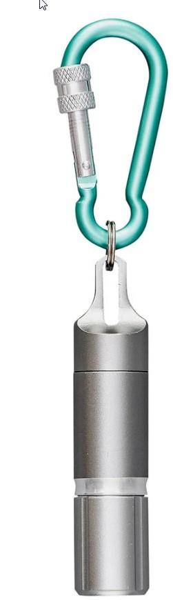 Mini lanterna cu LED si sistem de prindere cu carabiniera, perfecta pentru calatorii, dar si acasa.