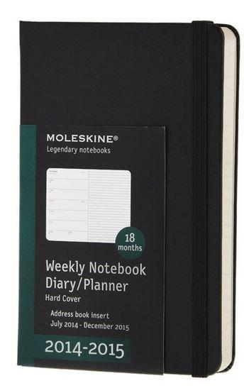 This pocket-sized 18-month weekly planner notebook covers the period from July 2014 through to December 2015. Featuring a hard cover with rounded edges, the notebook contains 208 pages of acid-free paper, a ribbon bookmark and an elastic band to keep everything secure when closed. There is an expandable inner pocket containing an address book and laminated alphabetic labels, which can be used individually or as part of the notebook. The planner notebook shows the week's appointments at a glance on the left, with a line page on the right for notes and ideas.