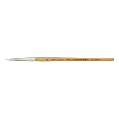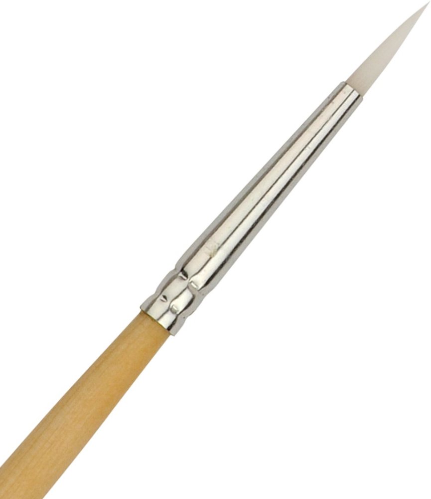 Pensula din par sintetic alb, fixat cu o banda de aluminiu pe coada din lemn natur. Pensula este ideala pentru pictura la scoala si acasa si pentru detalii de contur in pictura, datorita formei rotunde.