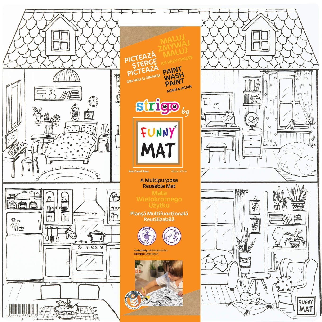 Strigo Funny Mat – Casa dulce casa 40 x 40 cm + markere