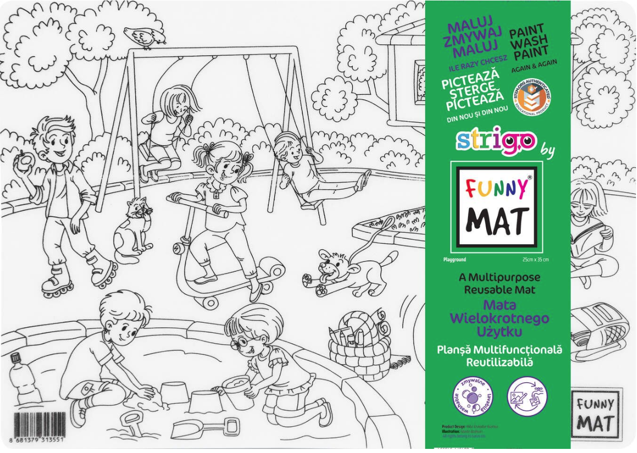 Plansele reutilizabile impermeabile „Strigo Funny Mat” nu sunt doar planse obișnuite. Fabricate din polipropilenă și complet non-toxice , sunt special concepute pentru a aduce beneficii distractive și educaționale .