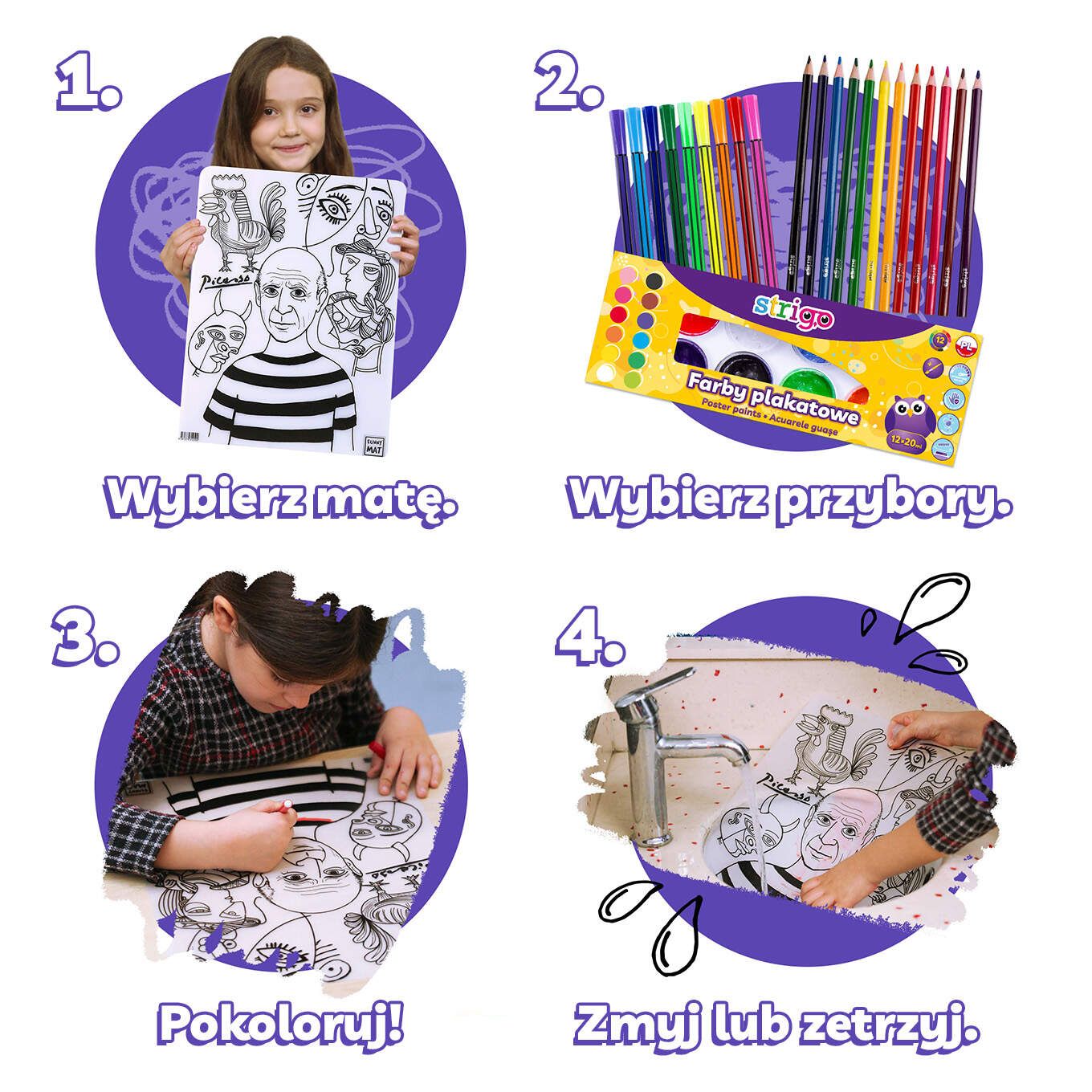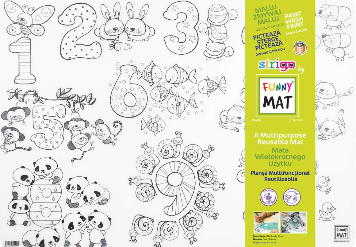 Covorașele reutilizabile impermeabile „Strigo Funny Mat” nu sunt doar covorașe obișnuite. Fabricate din polipropilenă și complet non-toxice , sunt special concepute pentru a aduce beneficii distractive și educaționale .