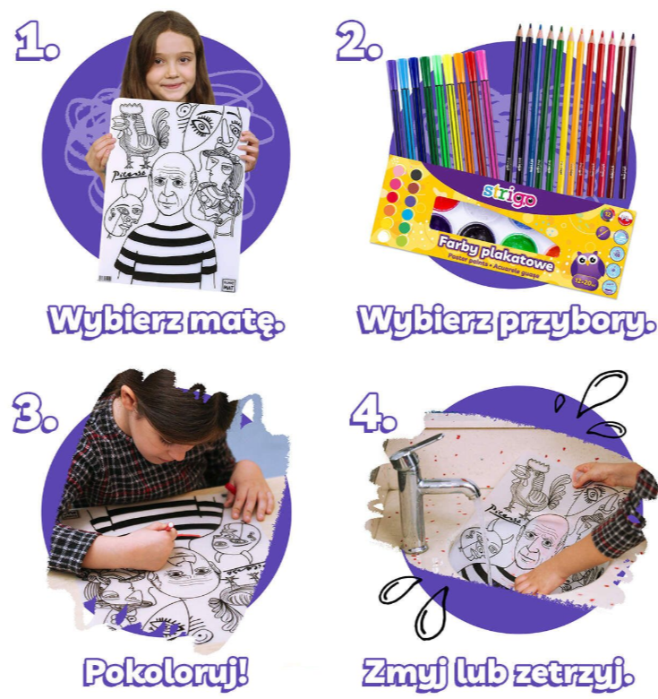 · Începeți întotdeauna să colorați sau să desenați de sus pentru a nu vă murdari mâinile.