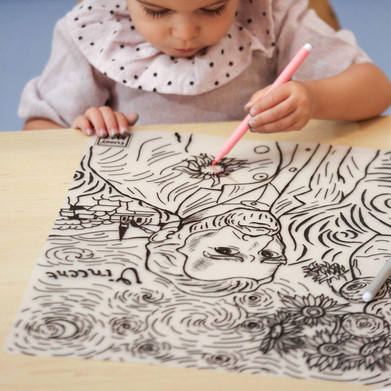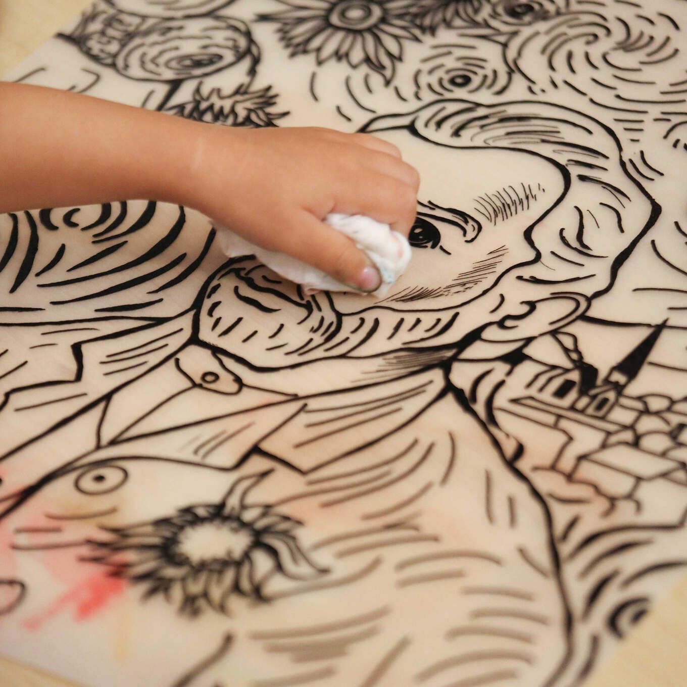 · Începeți întotdeauna să colorați sau să desenați de sus pentru a nu vă murdari mâinile.