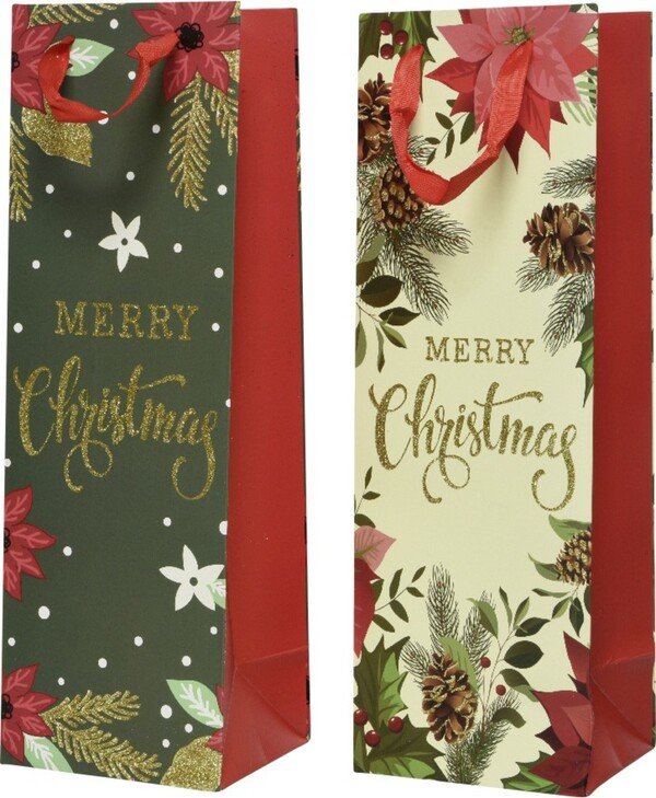 Punga cadou pentru sticle - Poinsettia - doua modele - pret pe bucata