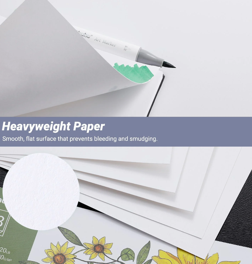 Grosimea hârtiei este de 200gsm, ideală pentru desenul cu markere.