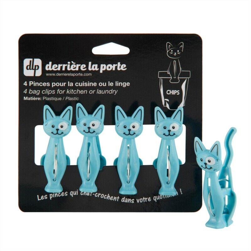 Set de 4 clipsuri pentru pungi în formă de pisică albastră.