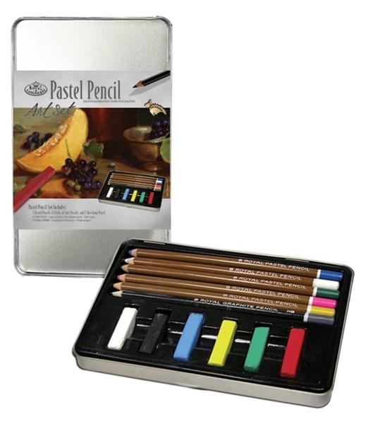 Includes 5 pastel pencils, 6 soft pastels, 1 graphite pencil and 1 storage tin