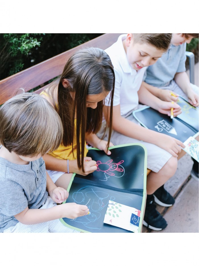 Distracție garantată, desenat fără murdărie! O planșă compactă și flexibilă. Ușor de curățat și refolosibilă, reducând deșeurile. Pur și simplu ștergeți cu o cârpă umedă pentru a refolosi. Set de 4 produse non-toxice ButterStix incluse.