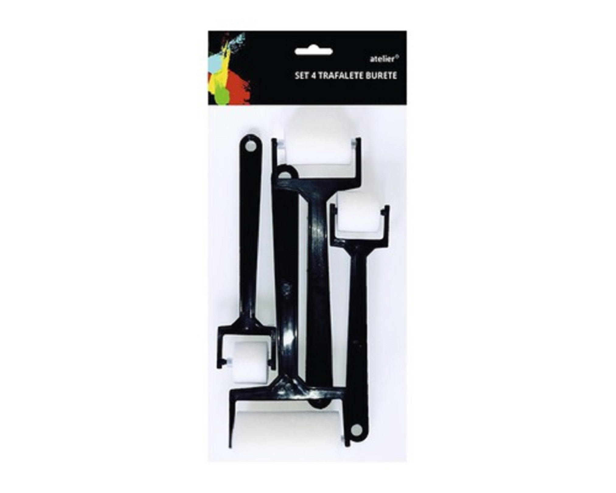 Setul conține 4 trafaleți care permit uniformizarea vopselei, pe planul de lucru.
