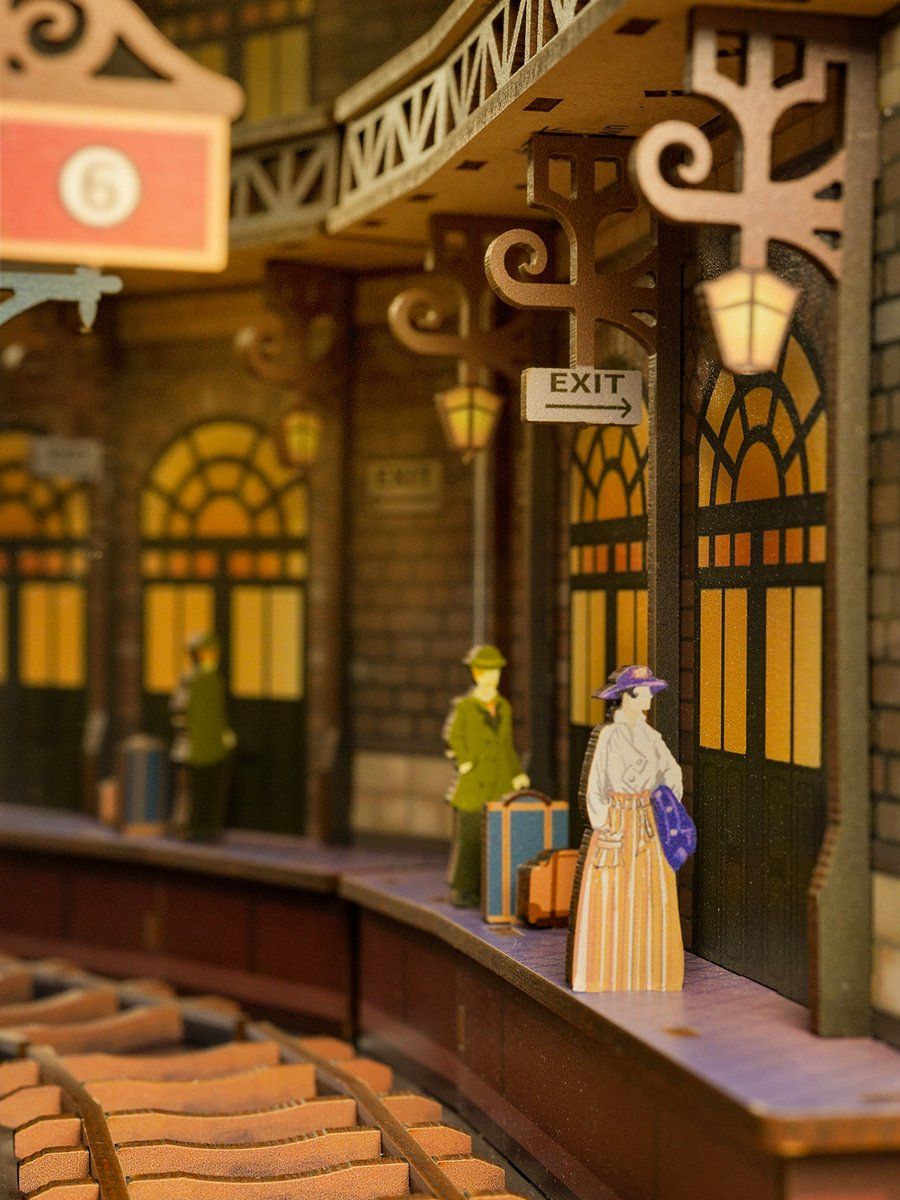 Modelul este inspirat de epoca aburului. A fost creat un locomotive retro cu abur, cu detalii restaurate aproape 1:1, cum ar fi farurile și coșurile de evacuare a fumului, care fac trenul mai realist. Pe peron, pasagerii așteaptă trenul care tocmai a sosit, iar pe balcon sunt cei care se iau la revedere. Descoperiți rapid ceasul bogat decorat, felinarele vechi și bonusul secret al acestui set de construcție din lemn.