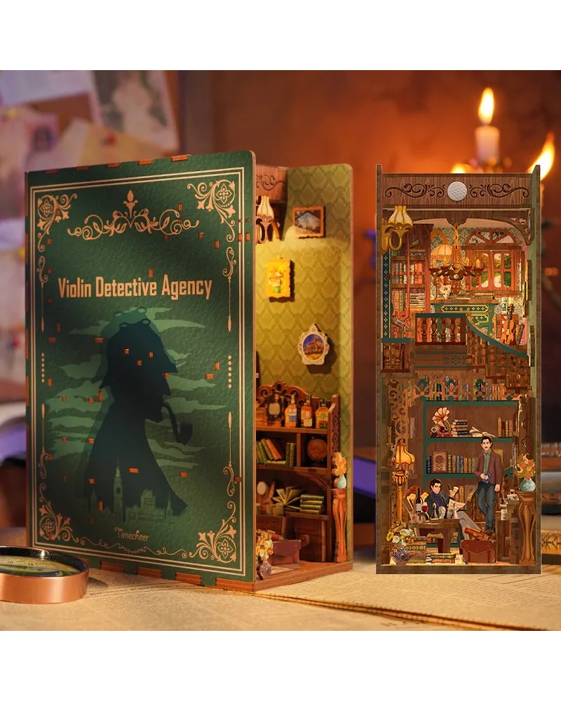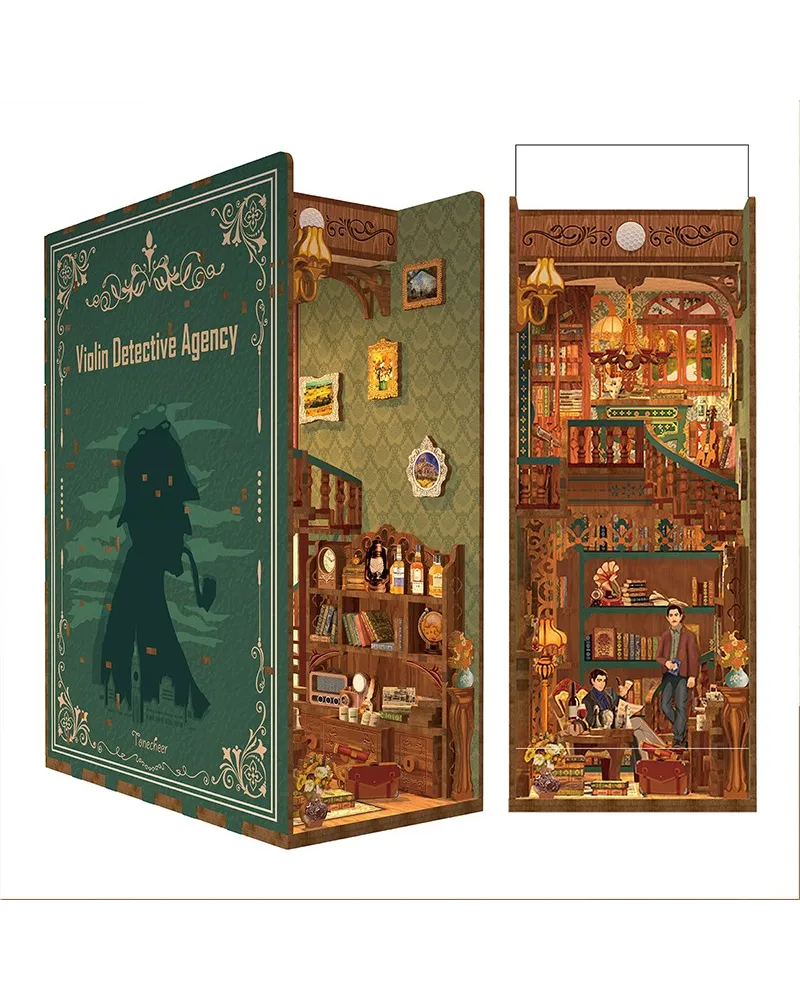 Tonecheer Violin Detective Agency este un book nook construit în jurul universului Sherlock Holmes și al farmecului investigațiilor clasice, într-o scenă miniaturală elegantă și misterioasă. Modelul surprinde esența unui cabinet detectivistic în stil victorian și aduce între cărți prezența lui Holmes și a lui Watson într-un decor plin de indicii, atmosferă și poveste.