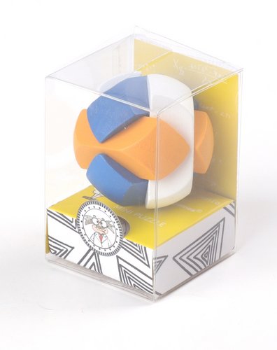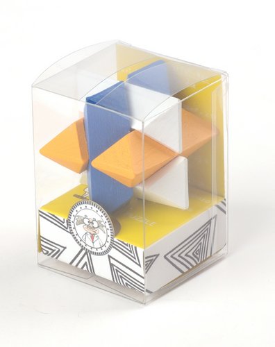 Un joc perfect pentru dezvoltarea abilităților de gândire logică, planificare strategică și percepție spațială și vizuală. Este ideal pentru călătorii și, de asemenea, pentru ameliorarea stresului. Conține un mini puzzle 3D realizat din lemn pictat alb, albastru și galben, precum și ilustrații cu soluția.