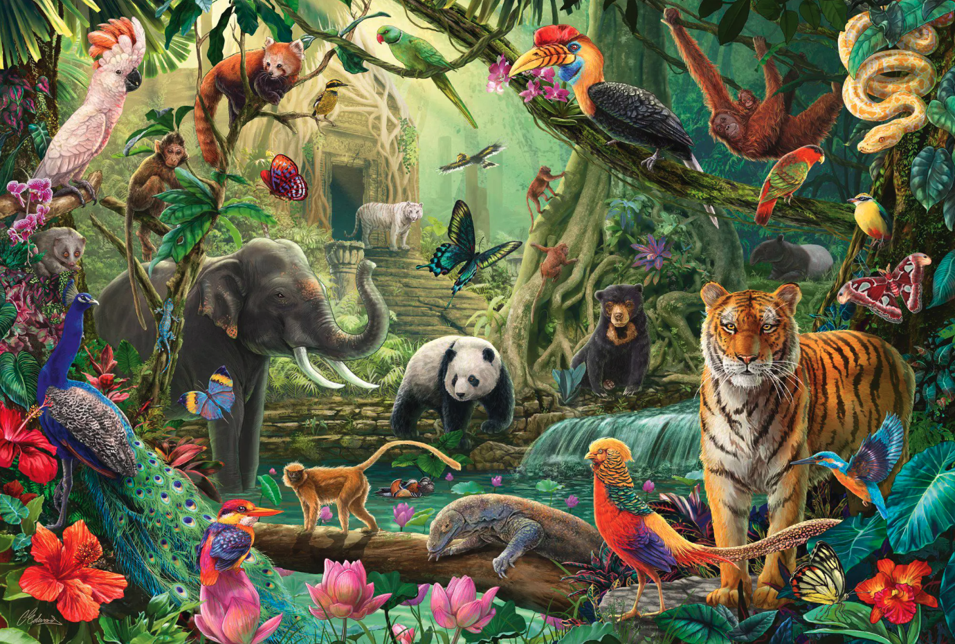 Descoperă lumea fascinantă a junglei cu puzzle-ul "Fauna sălbatică colorată în junglă" de la Schmidt, compus din 100 de piese. Acest puzzle oferă o experiență educativă și distractivă pentru copiii pasionați de animale și natură.