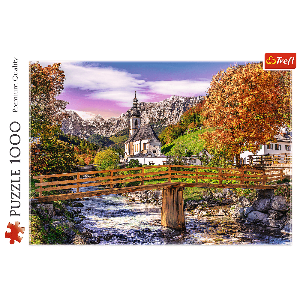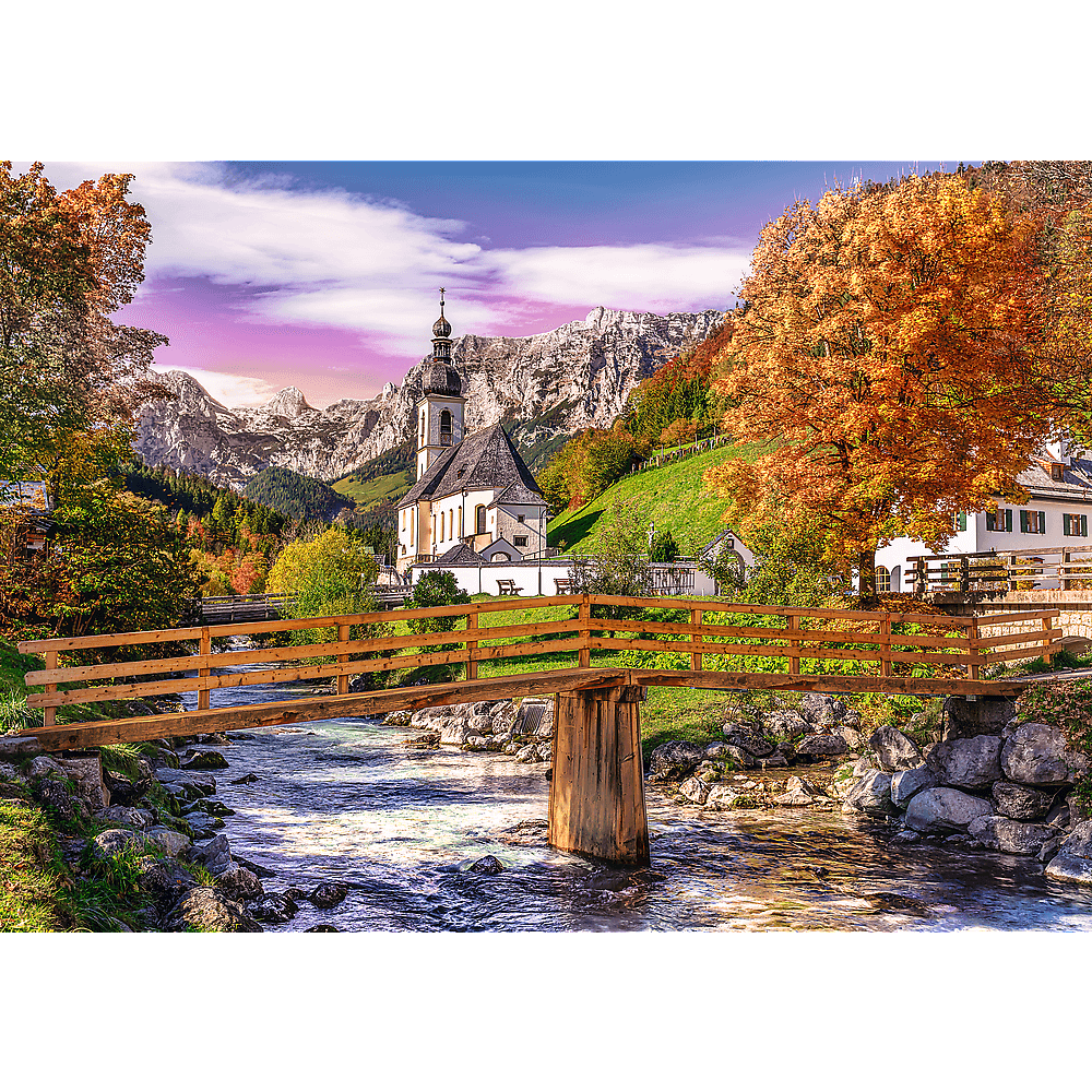 Un puzzle ce relevă, o dată asamblat, un peisaj pitoresc din Bavaria, scăldat în lumina toameni.