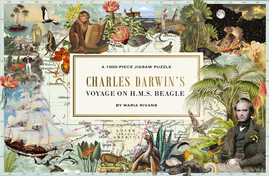 In this fabulous puzzle, collage artist Maria Rivans celebrates Darwin's journey with a glorious selection of its sights - from the giant tortoises of the Galapagos to the fossils of the Andes and, of course, the Beagle herself. Giving the puzzle an extra dimension, an accompanying booklet identifies the fauna included and reveals the stories behind the images chosen for the puzzle.
