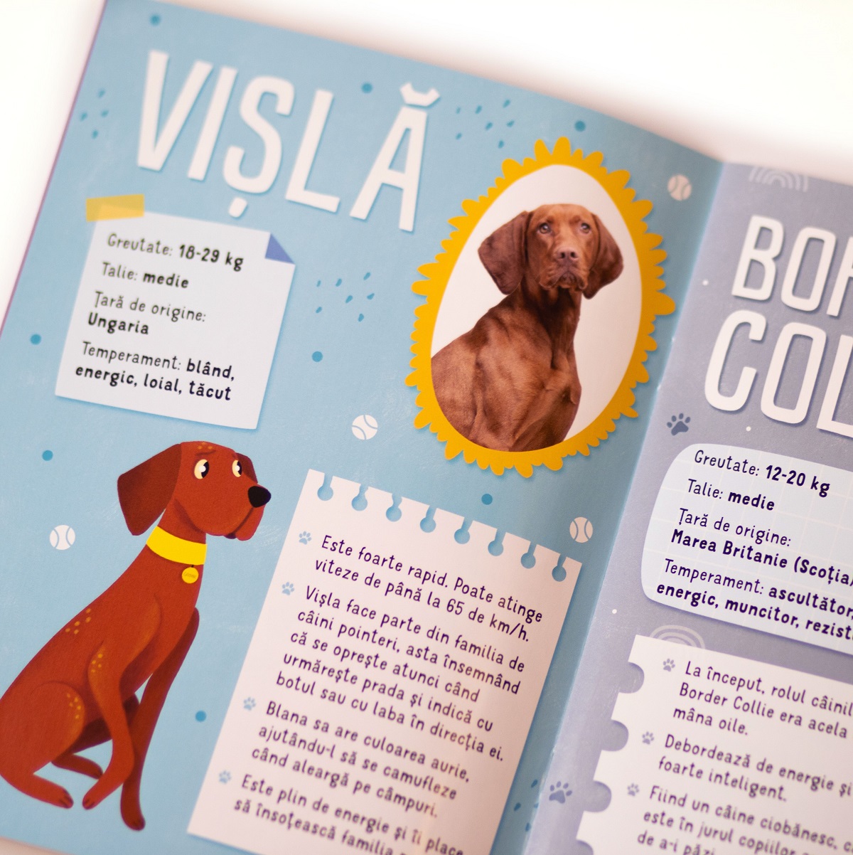 Lumea celor mai loiali si mai afectuosi prieteni ai omului te invita sa o descoperi si sa o explorezi pas cu pas, in timp ce rasfoiesti cartea cu cele mai populare rase de caini, asamblezi puzzle-ul sau te bucuri de stickere.